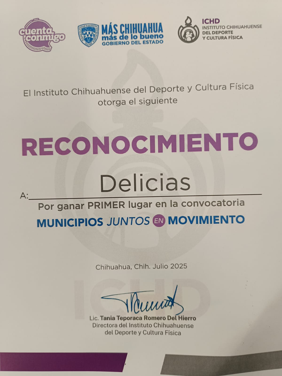 Gracias a la destacada participación de la comunidad deportiva de Delicias, el municipio recibió material deportivo como premio por haber obtenido el primer lugar en su categoría dentro del programa estatal Juntos en Movimiento, impulsado por el Instituto Chihuahuense del Deporte. Así lo dio a conocer el director del Instituto Municipal del Deporte y la Juventud (Inmudej), Miguel Aguirre, tras acudir a la ciudad de Chihuahua a recibir el reconocimiento.