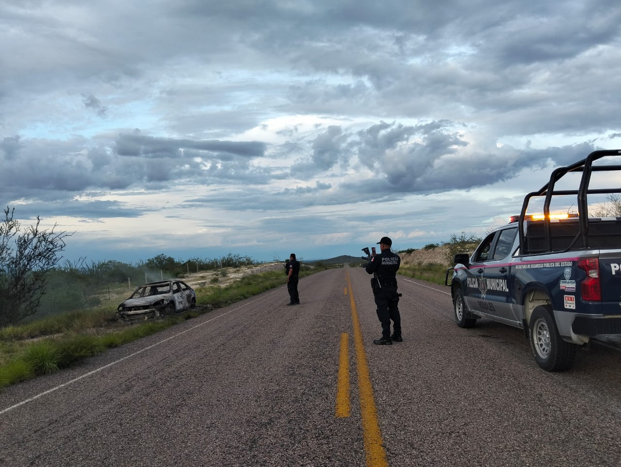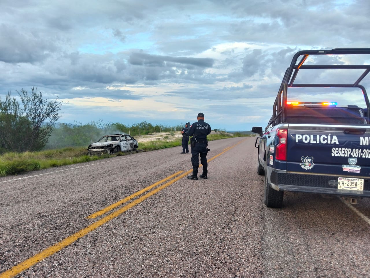Los hechos ocurrieron la tarde del jueves, cuando los agentes fueron interceptados por un ciudadano a la altura del entronque hacia Satevó y el cual manifestó haber observado un vehículo a la altura del kilómetro 30, en sentido de Rosales-Satevó aparentemente abandonado y con daños visibles por incendio.