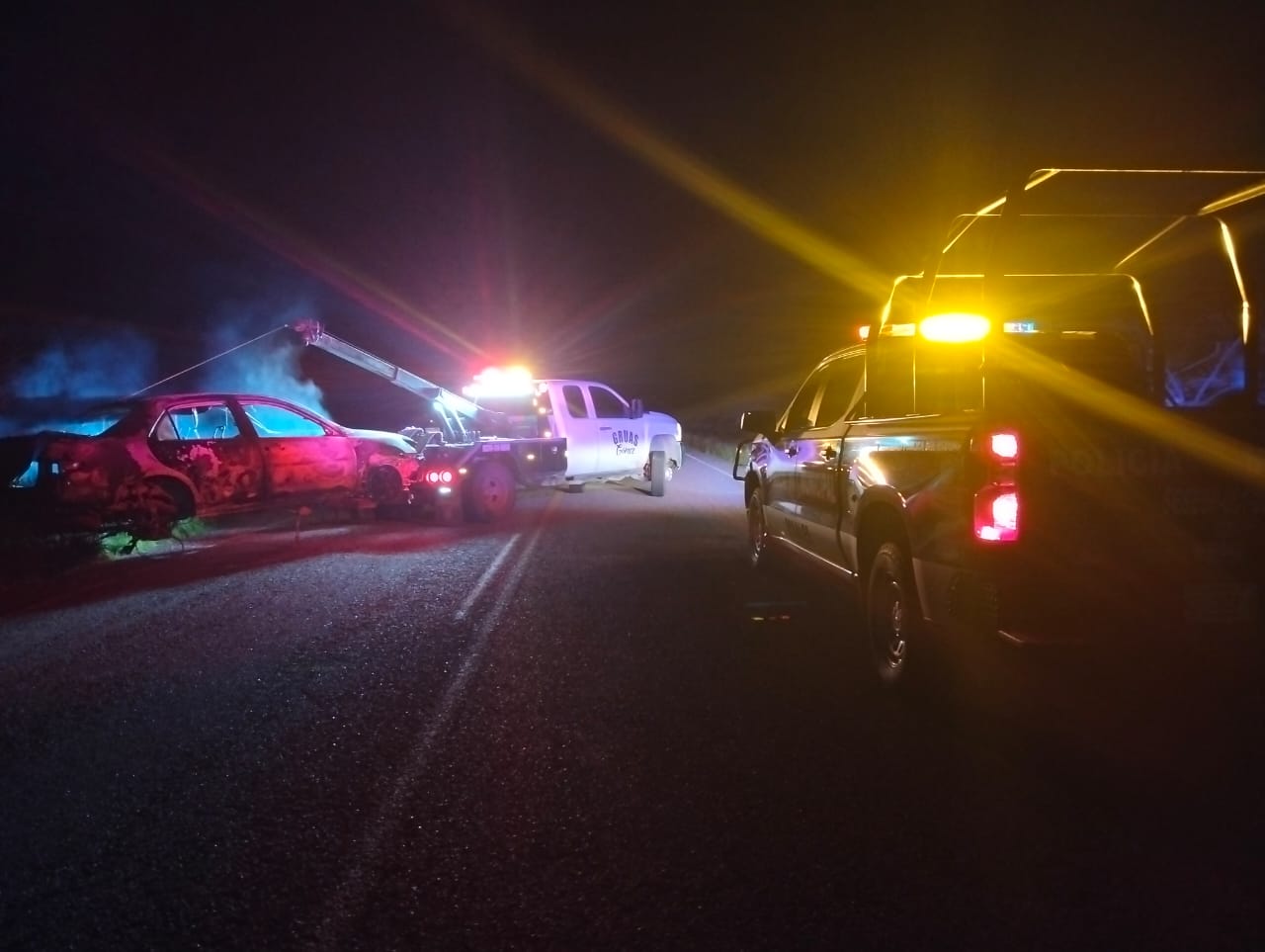 Una vez realizado el aseguramiento de la escena, se procedió a solicitar el servicio a la empresa Grúas Gómez, quienes realizaron el levantamiento del vehículo siniestrado para su resguardo en el corralón, en tanto se determinan las causas del siniestro y se investigue la posible identidad del propietario.