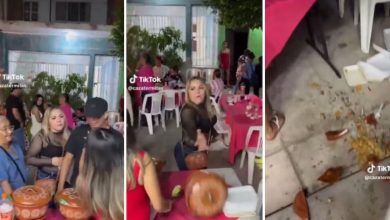 Todo mientras a su alrededor de hace una fiesta con baile y comida, además de que se liberan varios cuetes y fuegos artificiales.