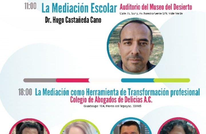 Más tarde, a las 7:00 de la tarde en el Colegio de Abogados de Delicias, se desarrollará la mesa panel “La Mediación como Herramienta de Transformación Profesional”, con la participación de expertos en la materia como el Lic. Eduardo Serna Jasso, Lic. Carlos Humberto Jaramillo García, Lic. Brisa Edén Olivera Prado y Lic. María Teresa Galindo Zubia.
