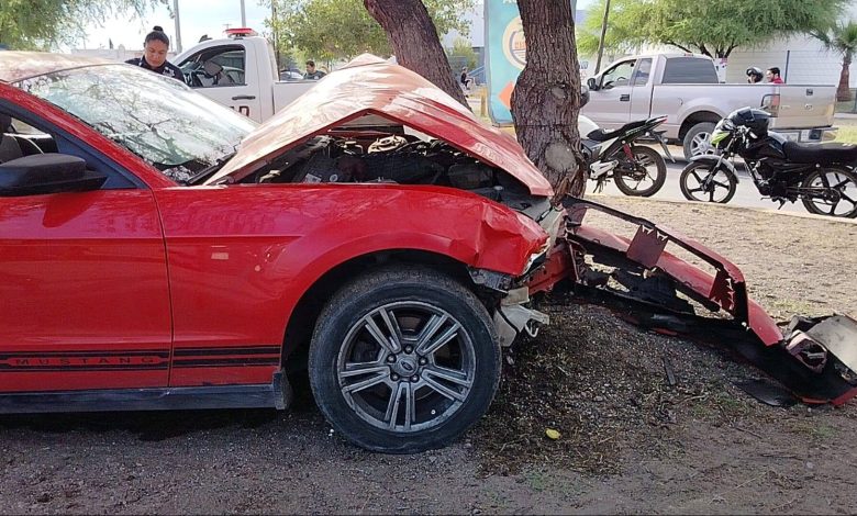 El fuerte choque provocó que ambos automóviles fueran proyectados hacia el camellón central, quedando sobre este; el Mustang terminó estrellado contra un árbol debido al impacto.