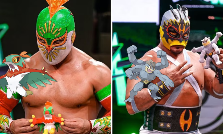 - Místico – Hawlucha: máscara y alas verdes, homenaje al Pokémon luchador.