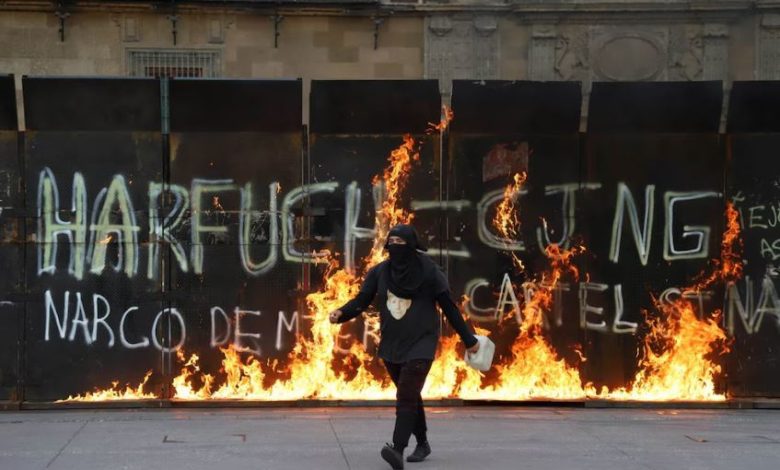 Particularmente, cuando los manifestantes ingresaron por 5 de Mayo y se aproximaron al Zócalo capitalino, se registraron ataques contra elementos de seguridad, resultando en 30 policías con quemaduras y la previsión de al menos 50 lesionados con heridas en el rostro, producto de un enfrentamiento que se extendió aproximadamente una hora. Los policías utilizaron extintores para intentar controlar las agresiones.
