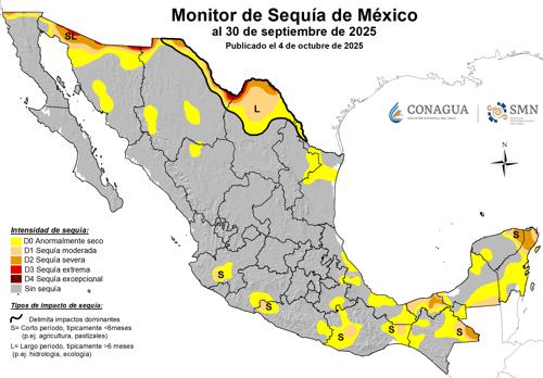 • 3.6% de su extensión está en sequía moderada (bajó 2.0 puntos)