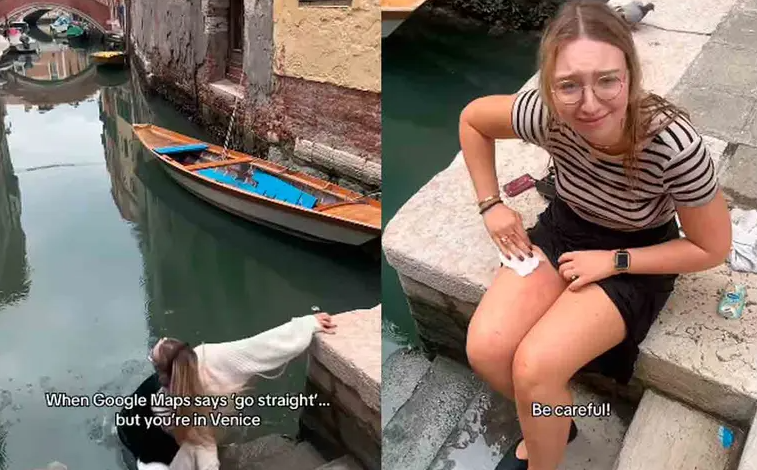 “Cuando Google Maps dice ‘sigue recto’, pero estás en Venecia”, escribió con humor en la descripción del clip.