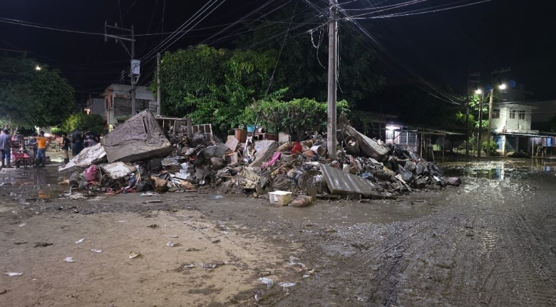 En la colonia Gaviotas, calle Las Garzas, en Poza Rica, #Veracruz, continúan los trabajos de limpieza y retiro de escombros tras las intensas lluvias.