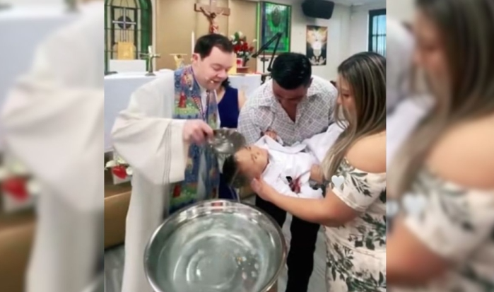 El sacerdote Adam Kotas se volvió a viralizar en las redes sociales durante un bautizo; “la tortilla siempre la va a tener pegada”.