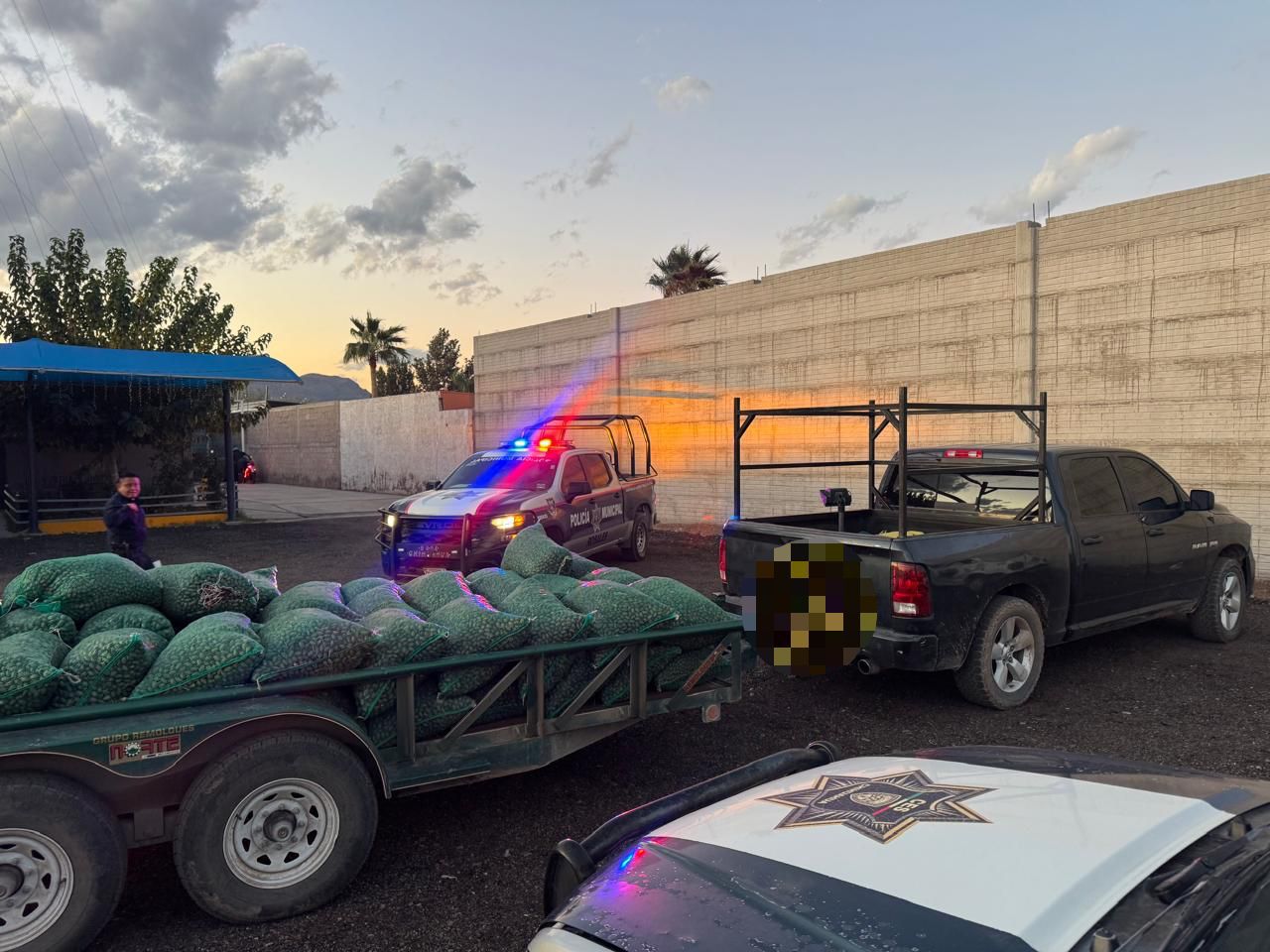 Los hechos ocurrieron durante la tarde de este viernes 24 de octubre, cuando durante un recorrido de prevención y vigilancia sobre la Avenida Central en la colonia Víctor Rosales, los oficiales detectaron un vehículo Chevrolet Silverado color guinda, con placas del estado de Chihuahua, el cual remolcaba una traila con lo que parecía ser nuez.