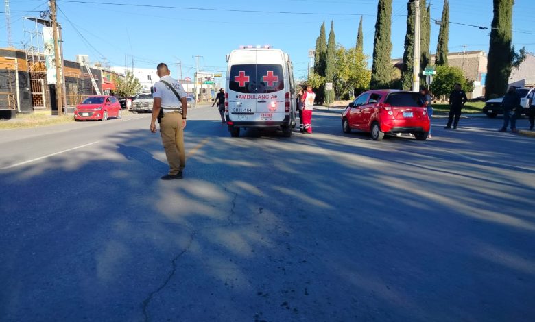 Un percance vial se registró frente al Teatro de la Ciudad, en el cruce de la avenida Agricultura con la avenida Río Conchos, en el sector oriente de Delicias, donde se vieron involucrados un automóvil Chevrolet tipo Spark en color rojo, en el que viajaba una familia, y una camioneta de entrega de la marca Fiat, tipo cerrada, por lo que al lugar arribaron paramédicos de la Cruz Roja Mexicana para brindar atención a los ocupantes del vehículo particular, quienes tras una valoración determinaron que no era necesario su traslado al centro médico.