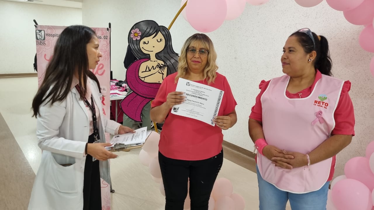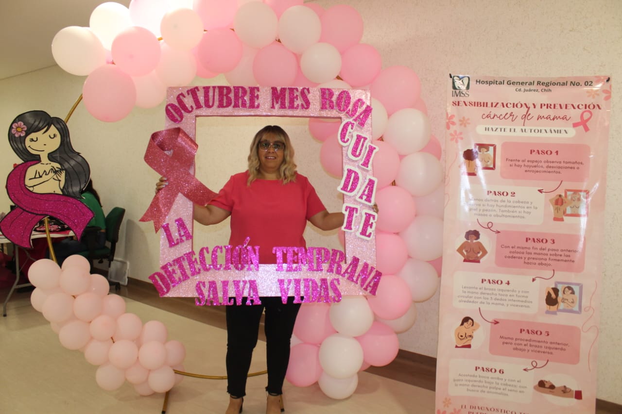Ciudad Juárez.- En el marco del Mes de la Sensibilización sobre el Cáncer de Mama, el Instituto Mexicano del Seguro Social (IMSS) en Chihuahua llevó a cabo una plática de sensibilización y prevención en el Hospital General Regional (HGR) No. 2 de Ciudad Juárez, organizada por la Coordinación Clínica de Educación e Investigación en Salud.