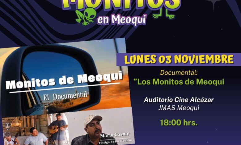Meoqui.- Como parte del programa “Misterio y Memoria: La Leyenda de los Monitos en Meoqui” este lunes 3 de noviembre, se llevará a cabo la presentación del documental “Los Monitos de Meoqui”, resultado de una investigación realizada por alumnos y maestros de la Facultad de Filosofía y Letras de la Universidad Autónoma de Chihuahua, en colaboración con el Gobierno Municipal de Meoqui, la cual tendrá lugar a las 6:00 de la tarde en el Auditorio Cine Alcázar de la Junta Municipal de Agua y Saneamiento en el municipio.