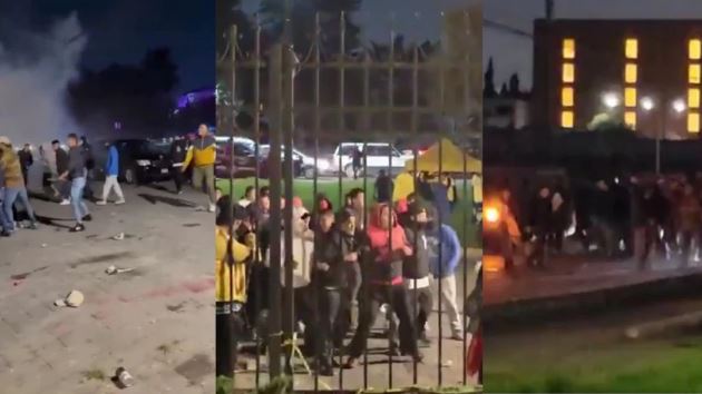 La serenata, que buscaba animar al equipo antes del partido, terminó entre gritos y confusión. Las mujeres y menores de edad que acompañaban a los asistentes intentaron resguardarse dentro del hotel y detrás de vehículos estacionados.