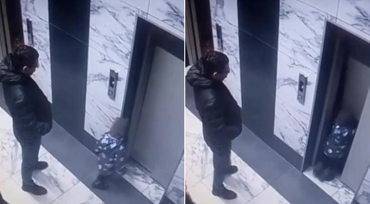 Un niño ruso se apoyó en la puerta de un ascensor cuando esta se abrió de repente y el pequeño cayó en el hueco. El padre logró rescatarlo. El niño no sufrió heridas graves. pic.twitter.com/5WSzVcwmTC