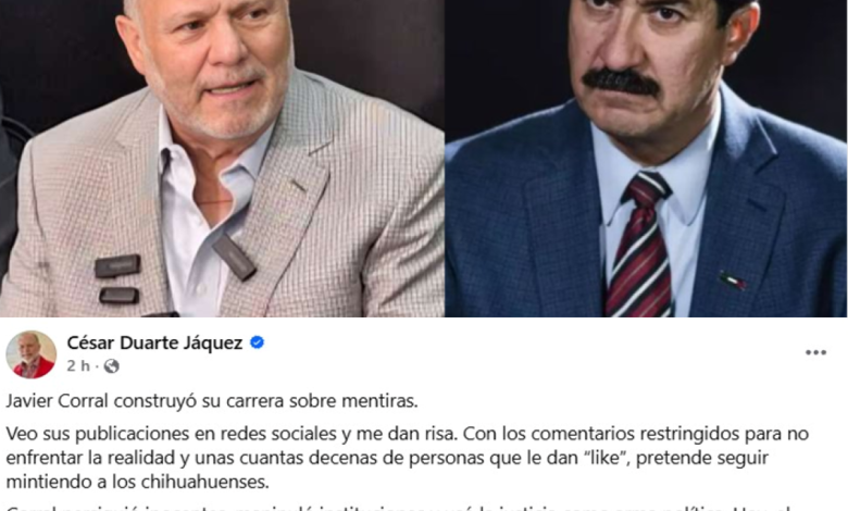Por otro lado, Corral ha insistido en que estas declaraciones pretenden desinformar al pueblo de Chihuahua, pues le pretenden cobrar haber generado procesos judiciales en contra de miembros de la administración estatal que Duarte encabezó.