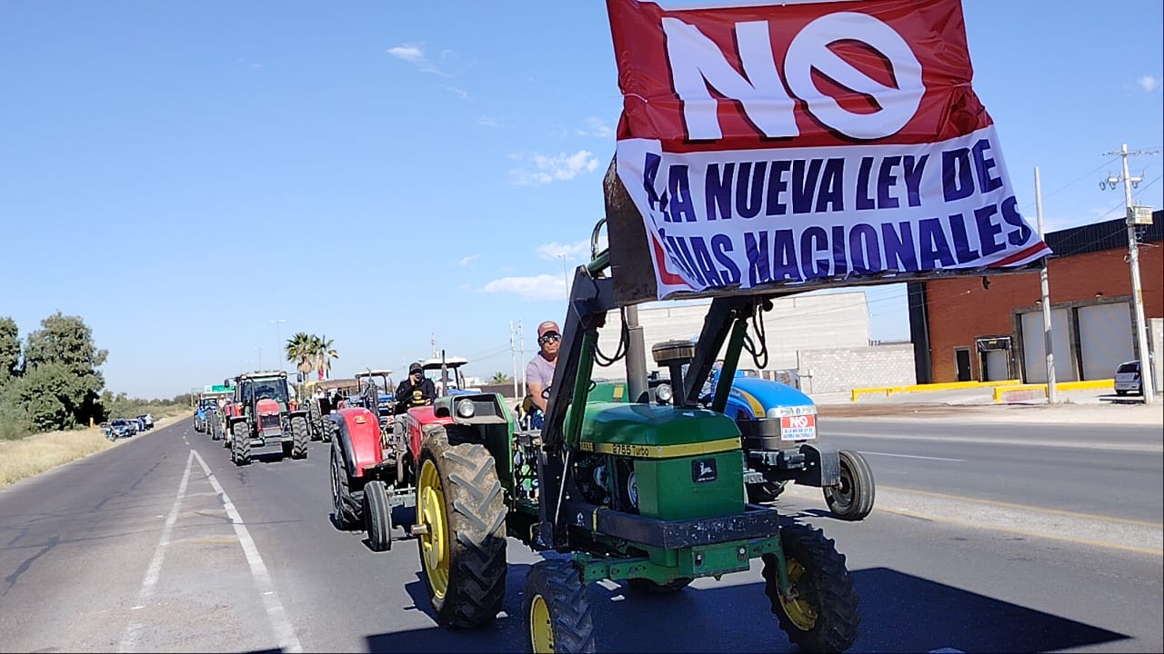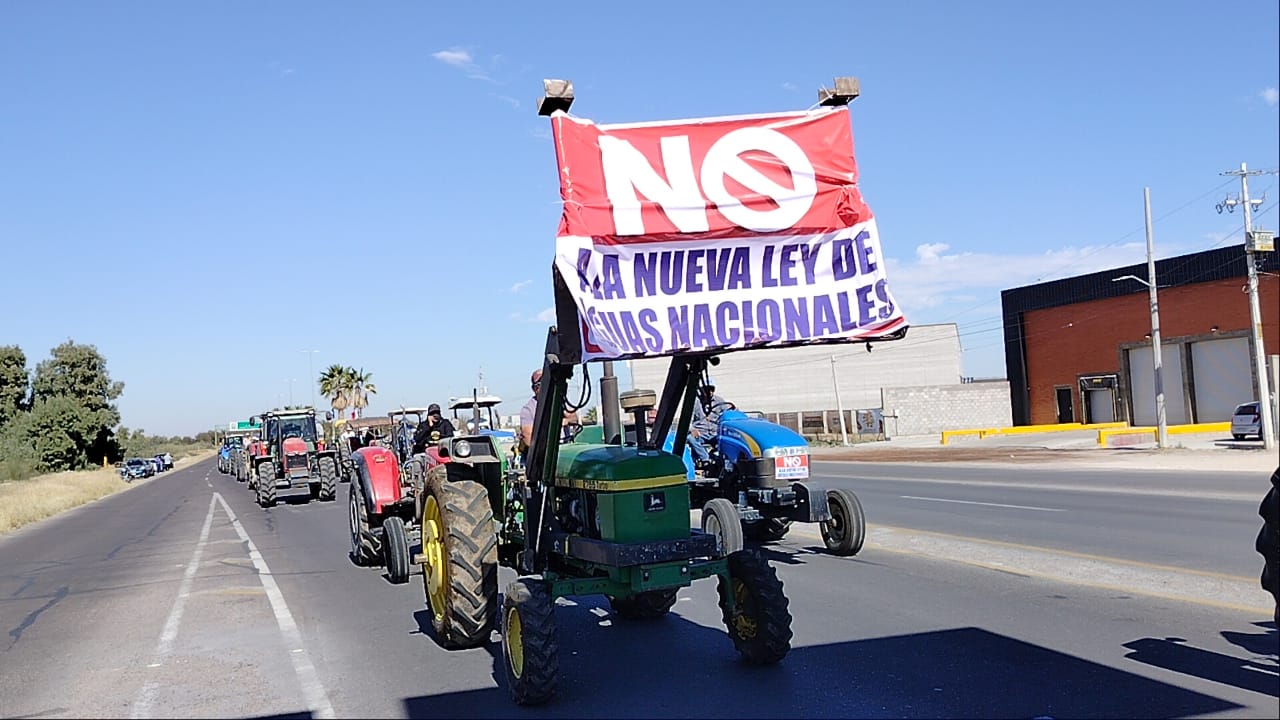 Productores y agricultores de la región centro sur se manifestaron este día en Delicias en rechazo a la nueva Ley de Aguas Nacionales una movilización que comenzó alrededor de las once de la mañana cuando los contingentes empezaron a desplegarse sobre la carretera federal en sentido de sur a norte.
