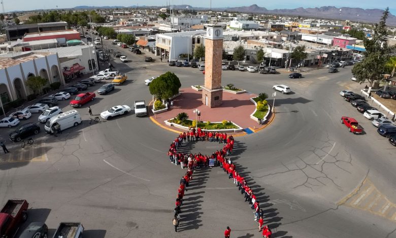 Coordinación de Salud de Delicias organiza elaboración de moño gigante para concientizar sobre el VIH