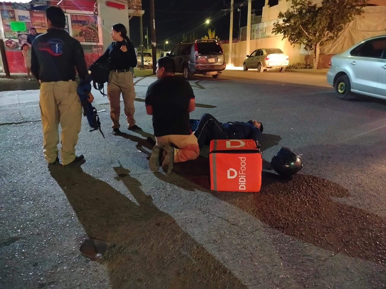 Al sitio acudió una ambulancia de la Comisión Estatal de Emergencias, cuyos paramédicos brindaron la atención prehospitalaria al lesionado y posteriormente lo trasladaron al IMSS, mientras que elementos de Vialidad realizaron el peritaje para deslindar responsabilidades, recayendo sobre el motociclista al invadir el carril del vehículo.