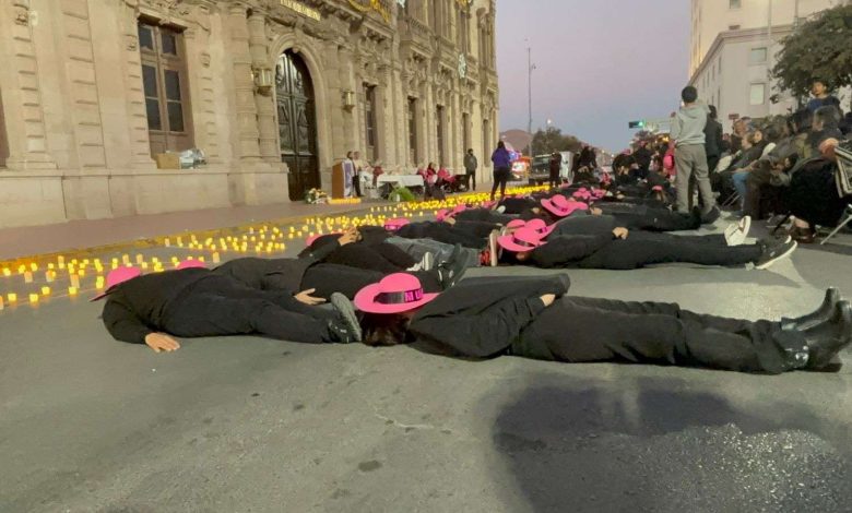 Chihuahua.- A 15 años del homicidio de la activista social Marisela Escobedo Ortiz, se realizó el encendido de velas y un performance frente al Palacio de Gobierno, muy cerca del lugar donde fue privada de la vida.