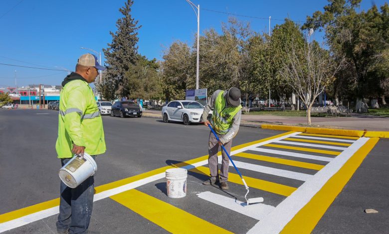 Concluye aplicación de pintura de tráfico en vialidades recién pavimentadas en Delicias