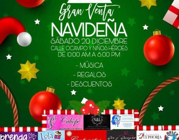 Meoqui.- Por primera vez en Meoqui, se llevará a cabo la Gran Venta Navideña este sábado 20 de diciembre en la Zona Centro en las calles Ocampo y Niños Héroes, donde más de 25 negocios ofertaran sus productos de 11 am a 7 pm en estas vialidades, además de música en vivo y sorpresas para toda la familia.