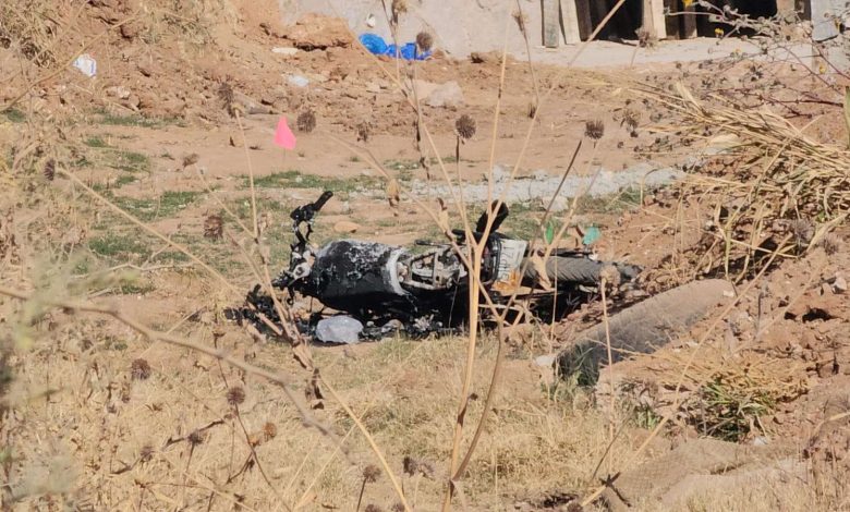 Chihuahua. – Una motocicleta fue hallada calcinada en la colonia Crucero, dentro de un arrollo, donde también encontraron dos mochilas con rastros de sangre y se presume tenga relación con las dos cabezas humanas encontradas en la Puerta de Chihuahua.