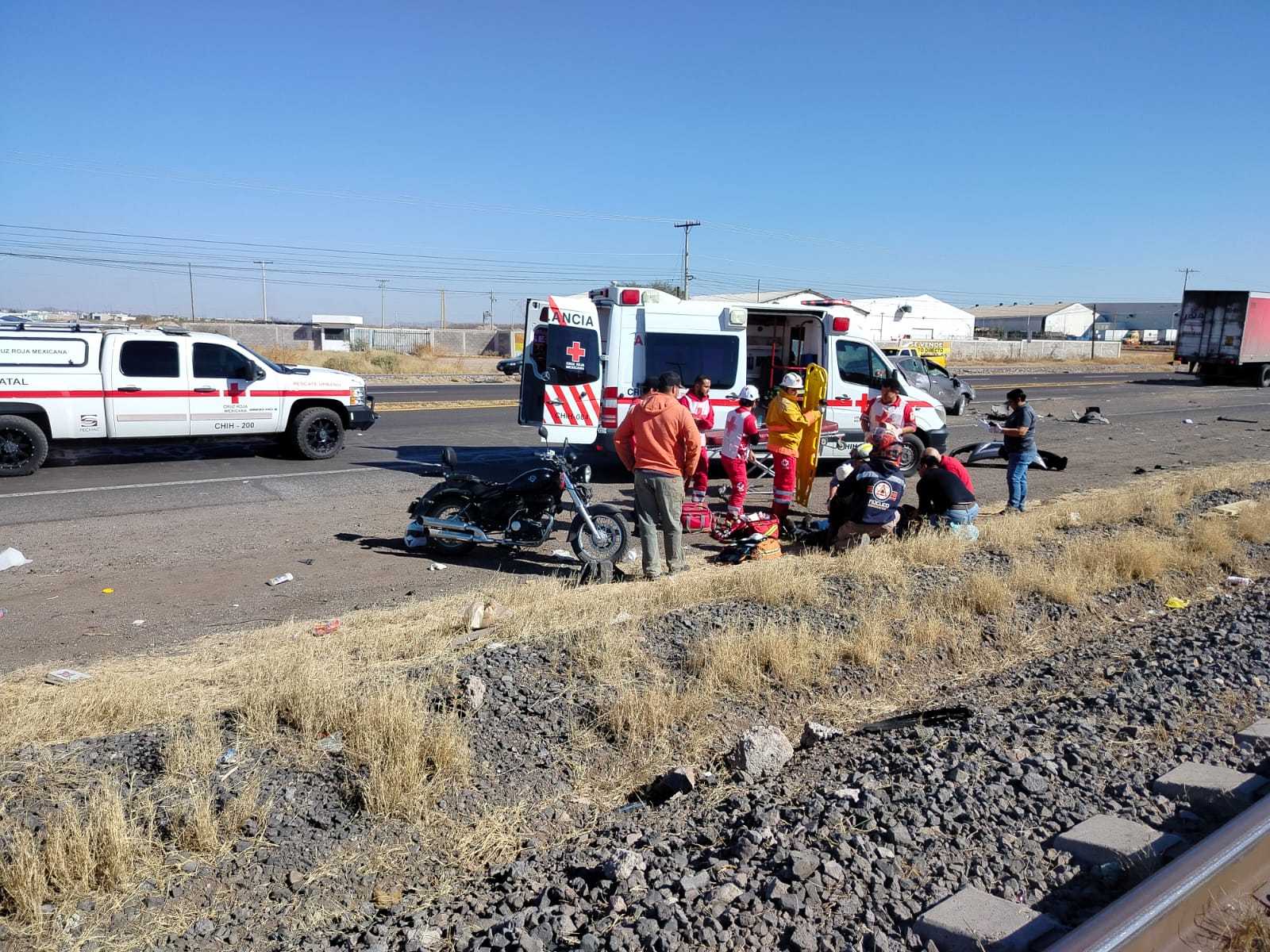 El accidente se registró a la altura de las antiguas instalaciones de la empresa Wrangler, sobre el carril de norte a sur —de Delicias hacia Saucillo—, lo que provocó una intensa movilización de voluntarios, paramédicos, corporaciones policiales, agentes de Vialidad y elementos de la Guardia Nacional.