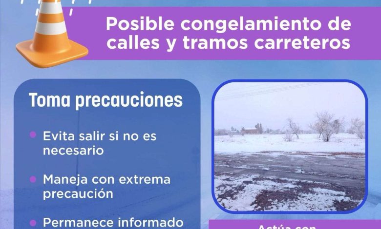 La Coordinación Estatal de Protección Civil (CEPC) emitió un llamado a la ciudadanía ante el riesgo de congelamiento en calles y tramos carreteros de distintas regiones del estado durante las primeras horas de este lunes 12 de enero, derivado de las bajas temperaturas registradas.