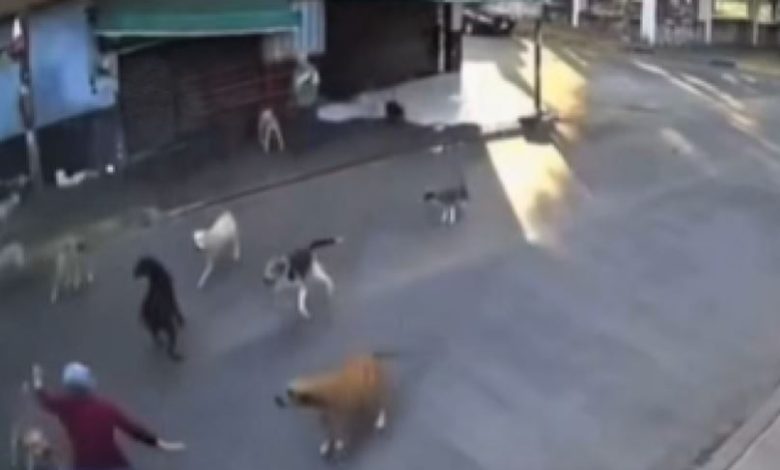 Las imágenes muestran cómo la mujer es derribada y atacada de manera continua, mientras dos personas —el dueño de los animales y un joven con una escoba— intentan dispersar a los canes. Minutos después, la mujer fue trasladada de emergencia a un hospital.