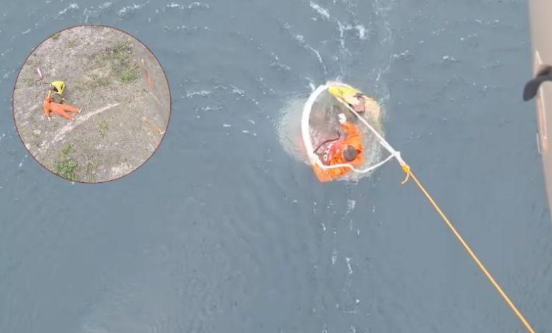 En un video difundido por la Marina de Brasil en redes sociales, puede observarse el momento exacto en el que el pescador es rescatado del mar, visiblemente agotado pero consciente.