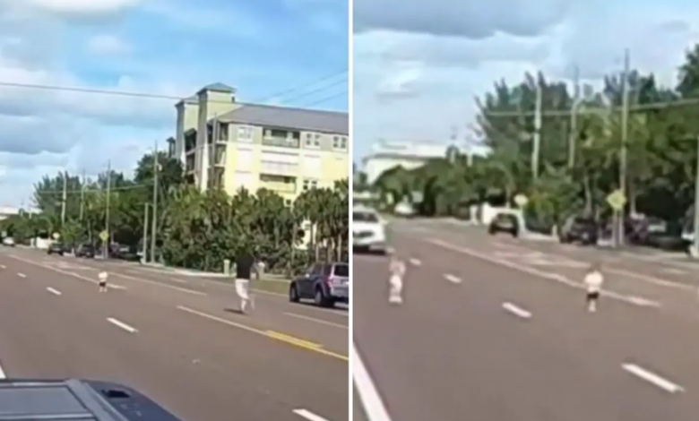 Un hombre rescató a dos niños pequeños que caminaban solos en una transitada autopista de Florida, en un acto de valentía captado en video por un dron.