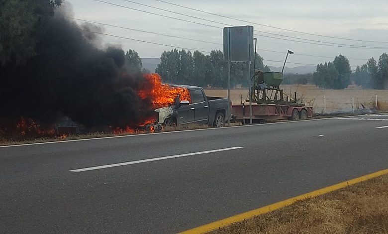 El hecho ocurre en sentido de sur a norte, pasando la caseta de Saucillo con rumbo a Delicias, donde la unidad permanece completamente envuelta en llamas, desprendiendo una densa columna de humo que es visible a varios kilómetros.