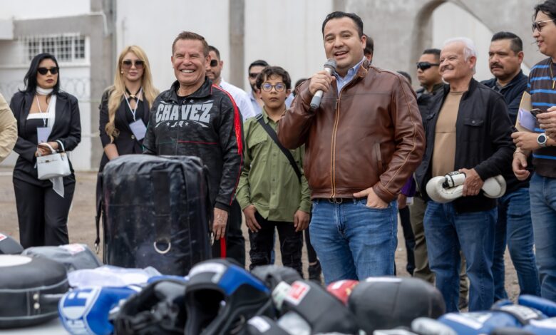 Develan busto del ídolo del boxeo mexicano JC Chávez en Delicias y ofrece plática motivacional