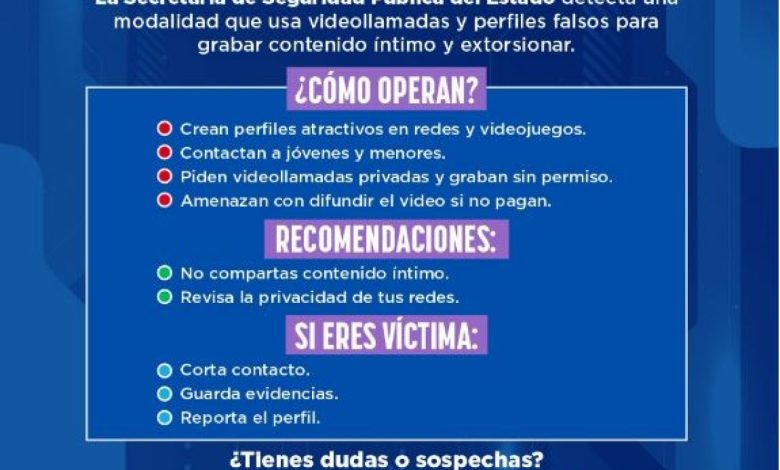 Para prevenir ser víctima de este delito, la Unidad de Policía Cibernética recomienda no compartir, bajo ninguna circunstancia, fotografías íntimas o contenido sensible con personas desconocidas, así como revisar y reforzar la configuración de privacidad de las redes sociales propias y de los menores a su cargo.