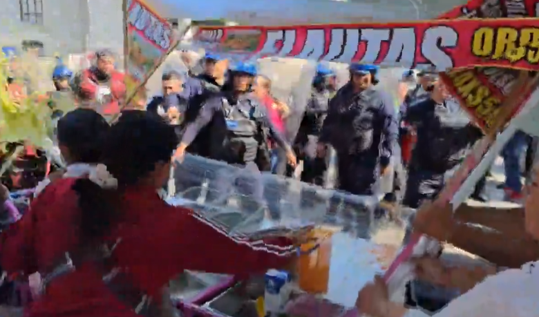 La comerciante se negó a retirarse, lo que derivó en un forcejeo cuando los policías intentaron desmontar su puesto. Durante el intercambio, los empujones y las discusiones subieron de tono mientras curiosos grababan la escena con sus teléfonos celulares.