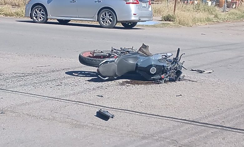 Con desprendimiento del lóbulo auricular derecho, una herida cortante en la frente y múltiples lesiones consideradas como politraumatismo, resultó un motociclista tras verse involucrado en un aparatoso accidente contra un vehículo particular.