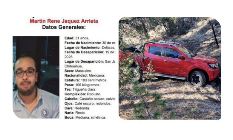 Martín René, quien radicaba en la ciudad de Delicias, se encontraba desempeñando sus labores profesionales como distribuidor de productos automotrices al momento de su desaparición el pasado jueves. Tras el operativo de búsqueda coordinado por las autoridades estatales, su cuerpo fue localizado en una brecha cercana a la comunidad de El Alamito, en el municipio de Bocoyna.