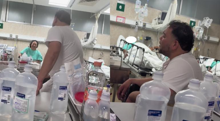 En el material compartido en plataformas digitales se observa al enfermero sentado frente a las camillas, interpretando el tema “Esclavo y Amo”, popularizado por el cantante mexicano Javier Solís y compuesto por José Vaca Flores.