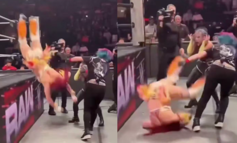 El momento se registró durante un episodio de WWE Raw, donde la luchadora japonesa protagonizaba un combate de alto nivel. En plena acción, intentó ejecutar uno de sus característicos movimientos aéreos desde el esquinero hacia el exterior del ring.