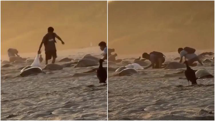 A través de las redes sociales, se difundió un indignante video que muestra el saqueo de nidos de tortuga en una playa de Oaxaca.