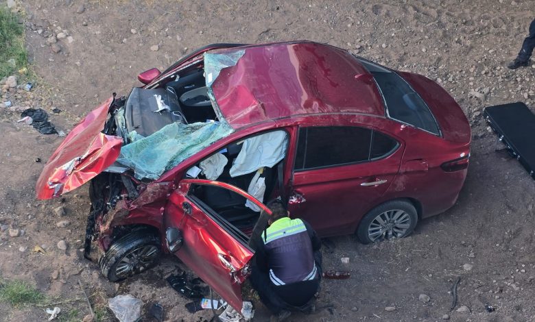 El vehículo involucrado, un Honda City en color guinda, aparentemente circulaba de norte a sur cuando salió del camino y cayó hacia un desnivel en un puente tipo vado, quedando prácticamente en pérdida total tras el fuerte impacto.