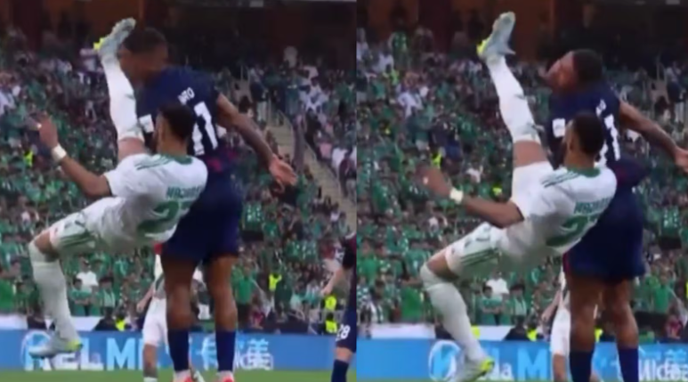 Jairo del Johor de Malasia recibió una PATADA DE LLENO EN LA CARA por Ali Majrashi en una disputa y se fue INCONSCIENTE de la cancha.