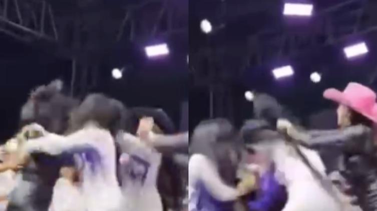 En videos difundidos a través de redes sociales, se observa el momento en que el grupo comienza su actuación, seguido de una pelea entre dos bailarinas que se jalonean del cabello. Otras integrantes del grupo, así como miembros de la agrupación musical, intervienen de inmediato para intentar separarlas, aunque la situación se tornó más caótica.