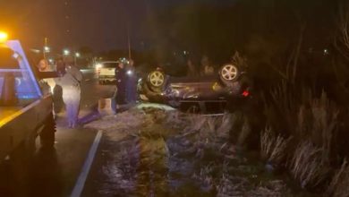 Choque con volcadura en la carretera Delicias–Rosales involucró a un agente de la policía municipal de Rosales; la camioneta volcó…